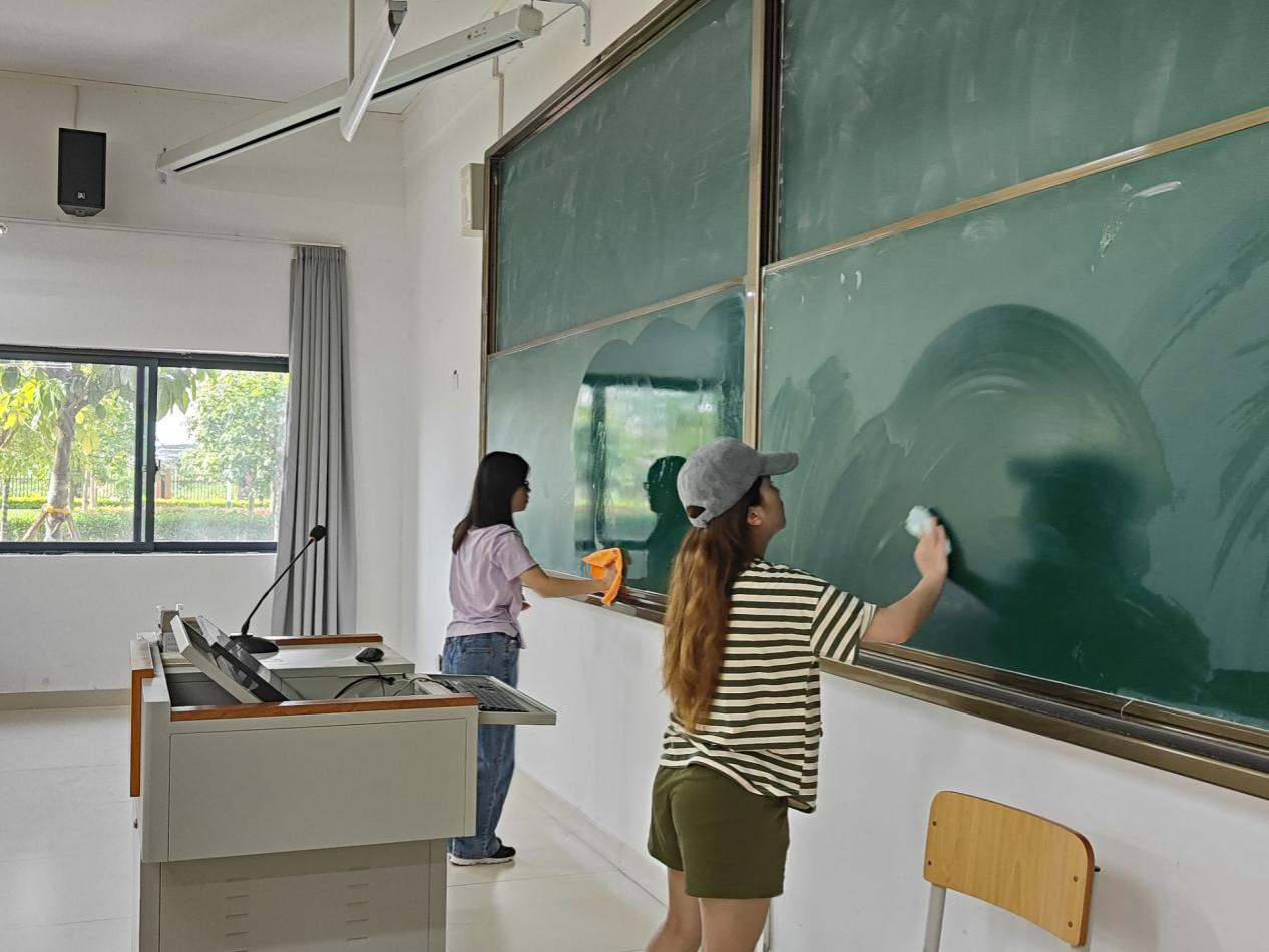 为将诚信教育融入学生日常活动,以学增智,以知促行,有效将教育成果转化为大学生的自觉素养与行为,教育学生树立社会责任感,感恩回馈、勇于担当, 2024年6月23日,一色 勤工部组织同学们在武鸣校区实验楼2举办以“社会责任感教育”为主题的清扫教室活动。