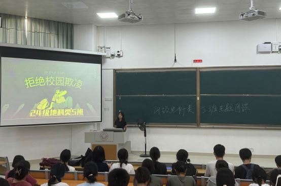 为了深刻认识到校园欺凌和暴力造成的危害,正确处理生活中的各种矛盾冲突,避免不应有的伤害发生,2024年9月20日,2024级地科类5班在武鸣校区实验楼2-C203举办了以“拒绝校园欺凌”为主题的团日活动。本次会议由团支书韦钰淑主持,全班同学共同参与。