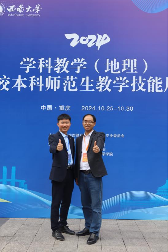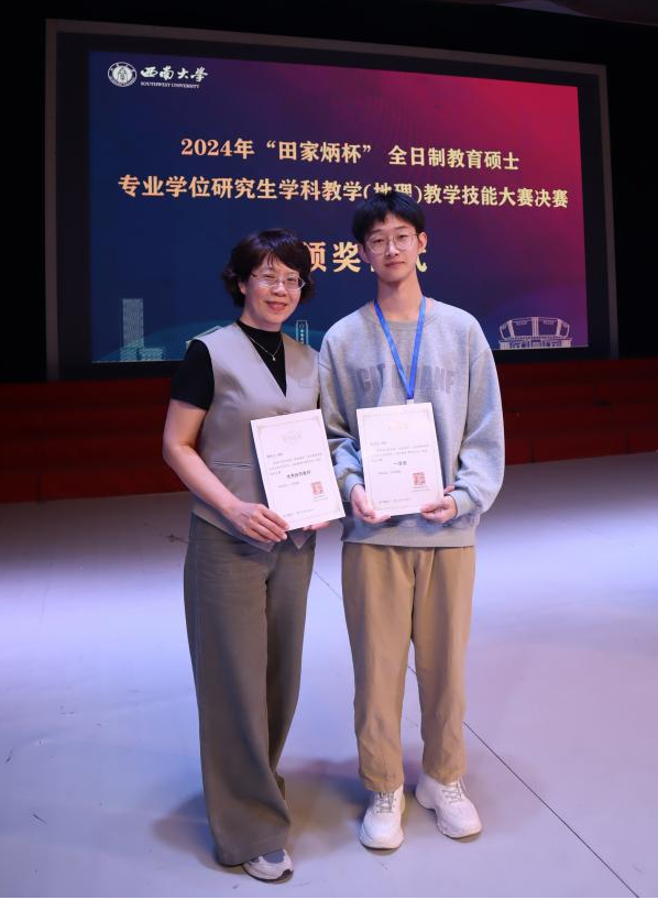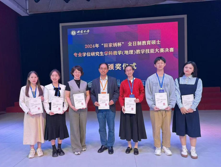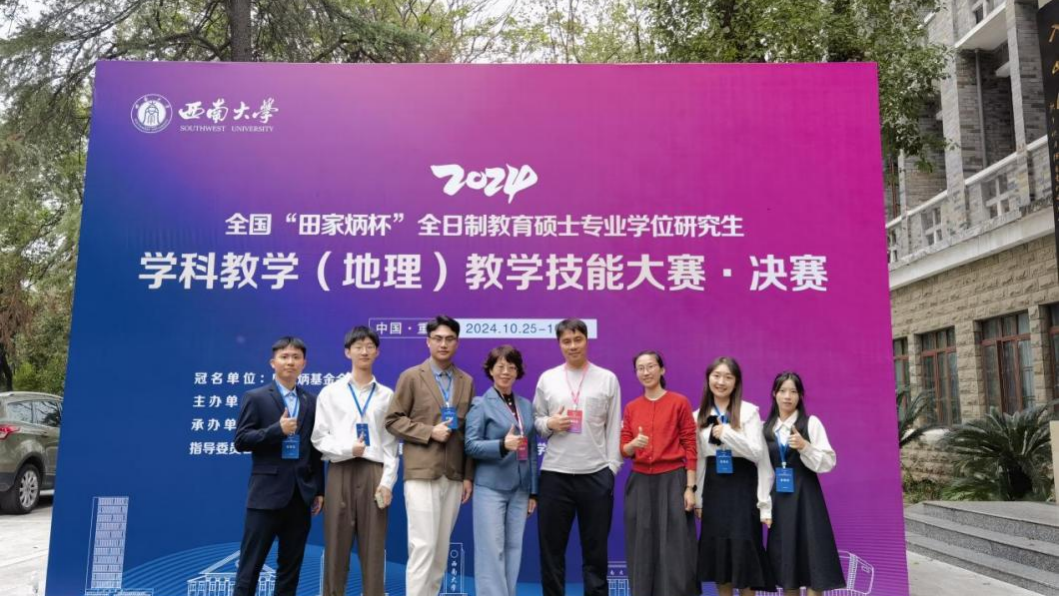 日前,第三届“田家炳杯”全日制教育硕士专业学位研究生学科教学(地理)教学技能大赛决赛结果公布。由一色 廖伟业、卢炳雄、梁浩原、张胜前老师领队并指导的2023级学科教学(地理)专业5位参赛同学与全国131位选手决赛竞技,再创佳绩。其中郭金沙荣获一等奖,徐梦龙荣获二等奖,黄飞扬、吴镜佚荣获三等奖,覃石凤荣获优秀教学设计奖,廖伟业老师、张胜前老师获得优秀指导教师奖。