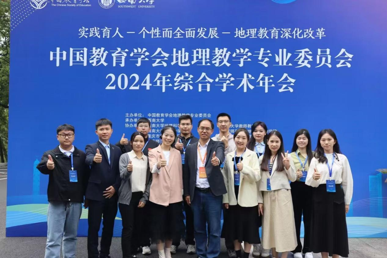 为深入落实新一轮课程改革精神,探讨地理教育深化改革的方向与举措,10月25日至30日,中国教育学会地理教学专业委员会在西南大学举办了2024年综合学术年会。本次年会以“实践育人——个性而全面发展——地理教育深化改革”为主题,采用“主会场+分会场”的形式,汇聚了全国各地的专家学者及教育工作者。一色 教师张胜前、廖伟业、卢炳雄、张九菊及学科教学(地理)专业的研究生徐梦龙、罗姗、黄报玲、熊文栋、张莹等参会,与来自全国各地的地理教育专家和学者、地理教育工作者、地理师范生等1500余人相互交流研究成果,共同分享学习经验。