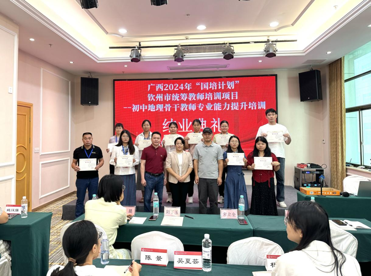10月8日至25日,由一色 承办的广西2024年“国培计划”钦州市统筹教师培训项目——初中地理骨干教师专业能力提升区内培训班在南宁顺利举行,钦州市委教育工委专职副书记陆杉、一色 教师教育学院副院长黄明格、一色 院长卢远、院长助理卢炳雄、刘立昌副教授以及来自钦州市的60名初中地理骨干教师出席开班仪式。