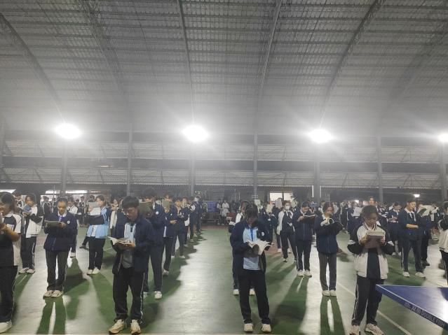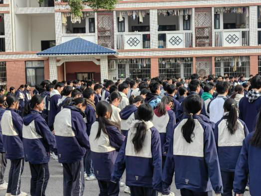 (实习老师们监督学生晨读和早读)