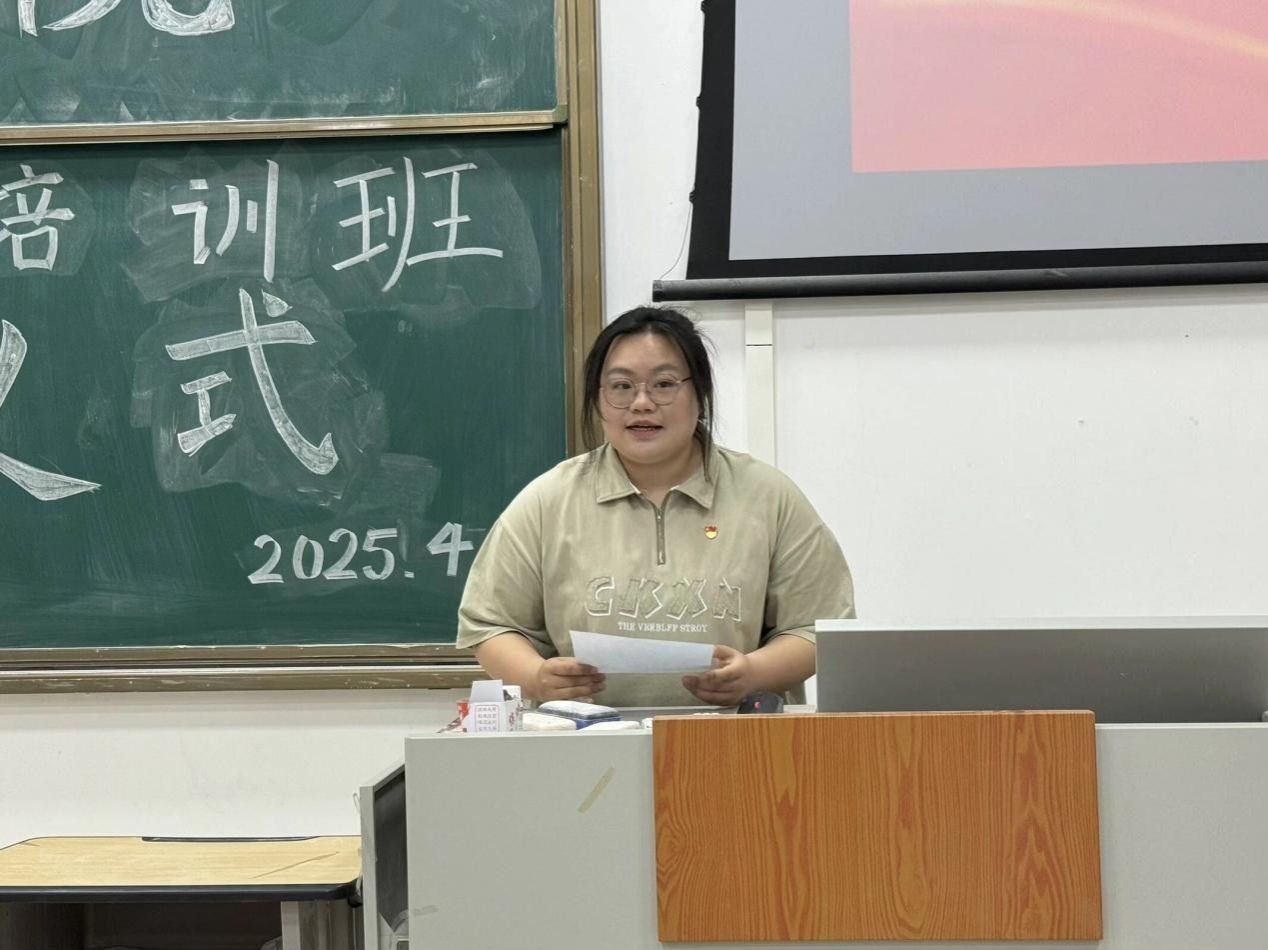 4月15日,一色 于武鸣校区地源楼B107教室开展了2025年“青马工程”培训班开班仪式,学院党委副书记盛凯、学院团委书记蔡琪、学院青马工程培训班学员以及班、团学生代表参加开班仪式。