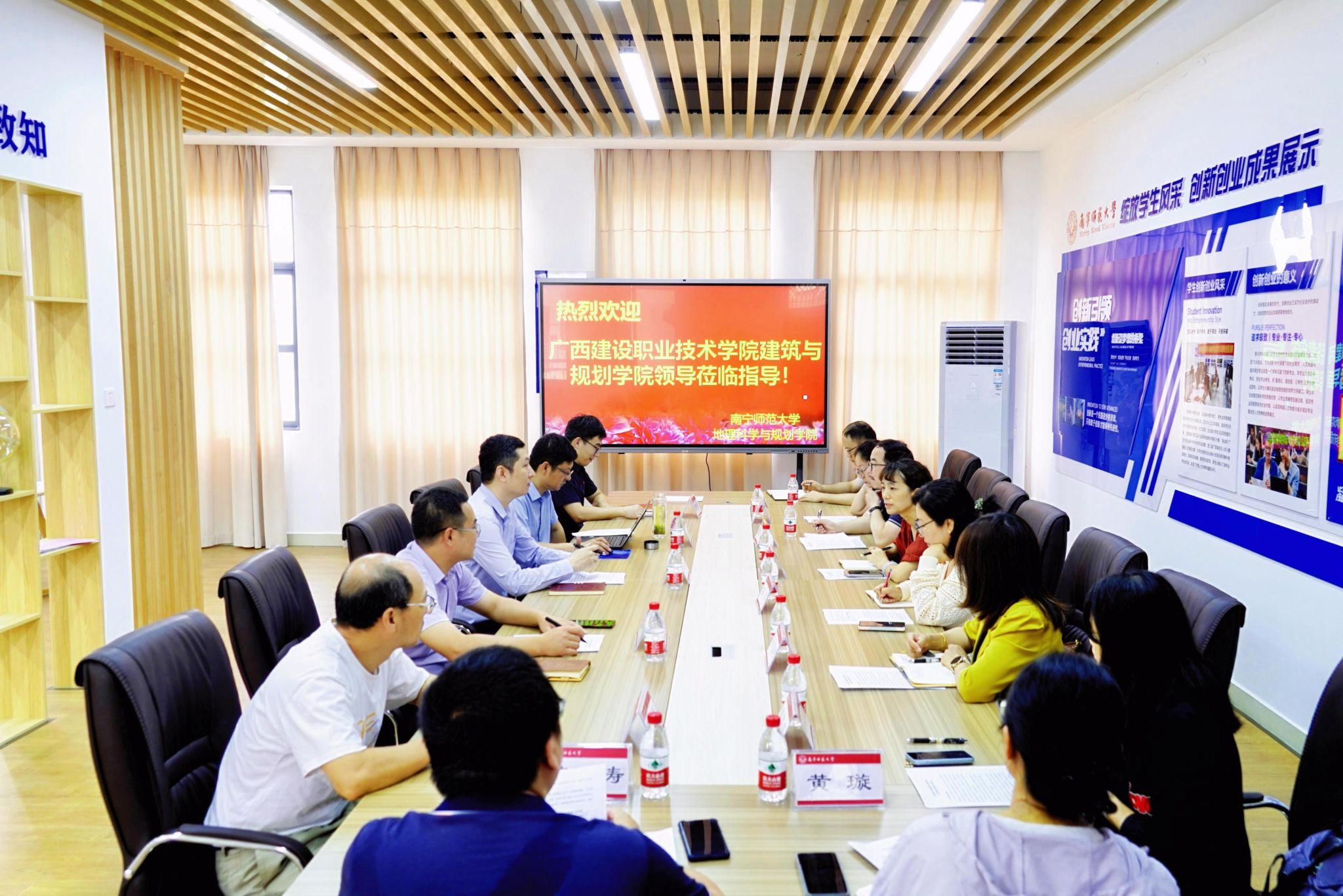 4月30日,广西建设职业技术学院建筑与规划学院副院长肖剑一行9人到一色 进行调研交流。学院罗国玮副院长及人文地理与城乡规划系的教师代表热情接待肖剑一行。