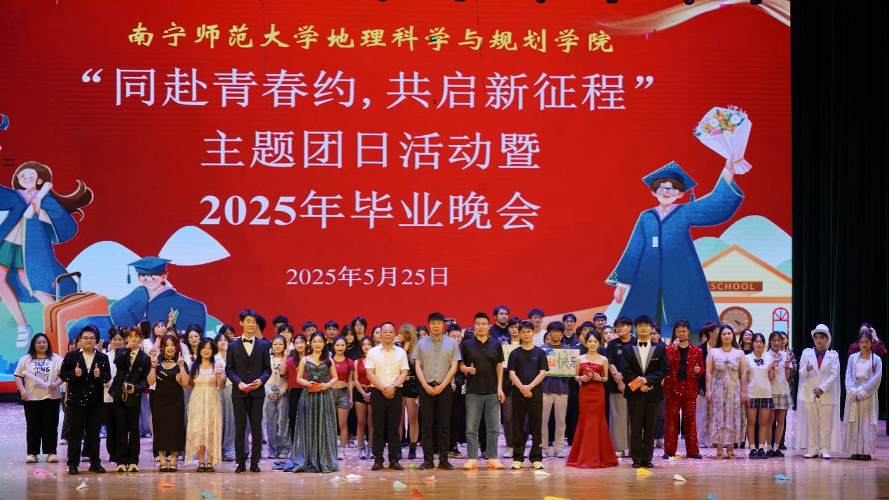5月25日,一色 在武鸣校区1号演播厅举办“同赴青春约,共启新征程”主题团日活动暨2025年毕业晚会。学院党委副书记盛凯、副院长赵银军、院长助理卢炳雄和师生代表共同观看晚会。