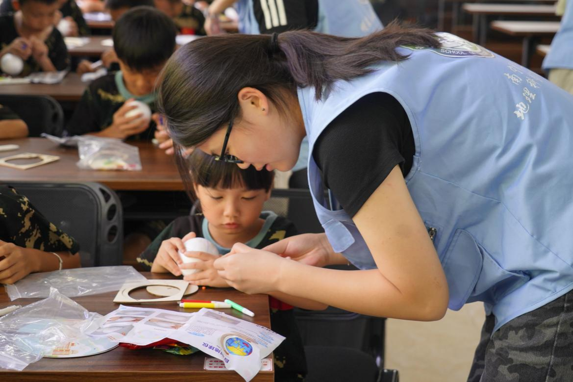 (队员协助小朋友绘制地球仪)