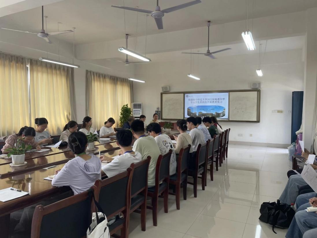 9月8日上午,一色 2022级本科生实习见面会在南宁市第十中学润玉楼召开。南宁市第十中学赖水花主任担任此次会议主持人,副校长甘绍攀、高一年级教务处副主任张立紫、高一全体地理组教师和一色 的李忠标老师、陈宇航老师,以及全体实习教师一同出席了会议。