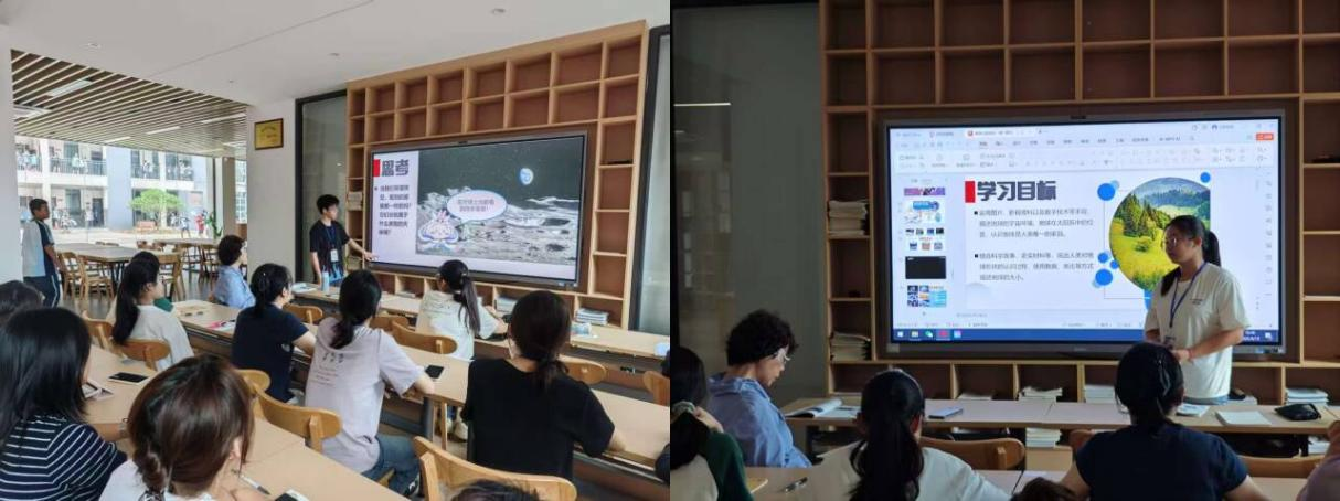 评课过程中,两位实习教师首先对各自的授课情况做了教学反思。李东鸿认为自身在问题设计的构建上存在不足,对问题链的构建不够满意,后续需进一步优化问题设计,以提升课堂的引导性和思维培养效果。罗林芳表示,自己在教学中存在照本宣科的问题,过于依赖教材原有编排,知识点讲解零散,在教材重组和学生思维能力挖掘方面存在不足,需在教学创新和知识整合上加以改进。随后,指导教师唐春指出,李东鸿的教学目标明确,问题链有层次感,注重学生思维能力培养,建议在内容精选、互动深度和语言严谨性上进一步优化。罗林芳的初始教案缺乏主线、内容碎片化,后期PPT资源丰富,课堂氛围好,备课需更充分,要根据学情调整教学深度,避免因学生突发提问而慌乱。同时,唐老师对现场实习教师提出建议:新老师在课堂上常出现知识点零碎、缺乏主线的问题,导致课堂容易“断掉”,因此新老师的备课要有足够的深度。