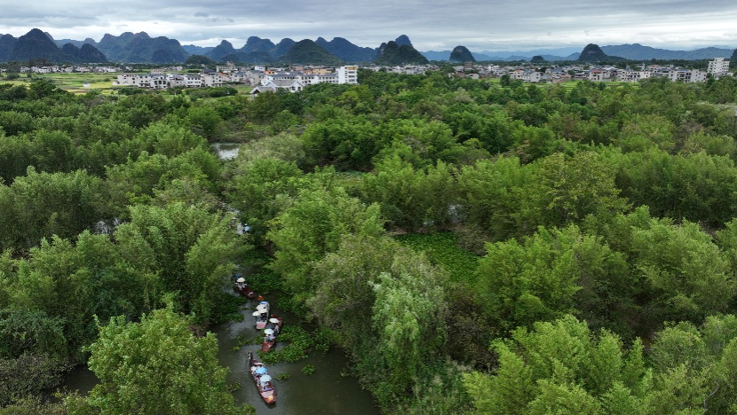 (实习队伍在会仙喀斯特国家湿地公园)