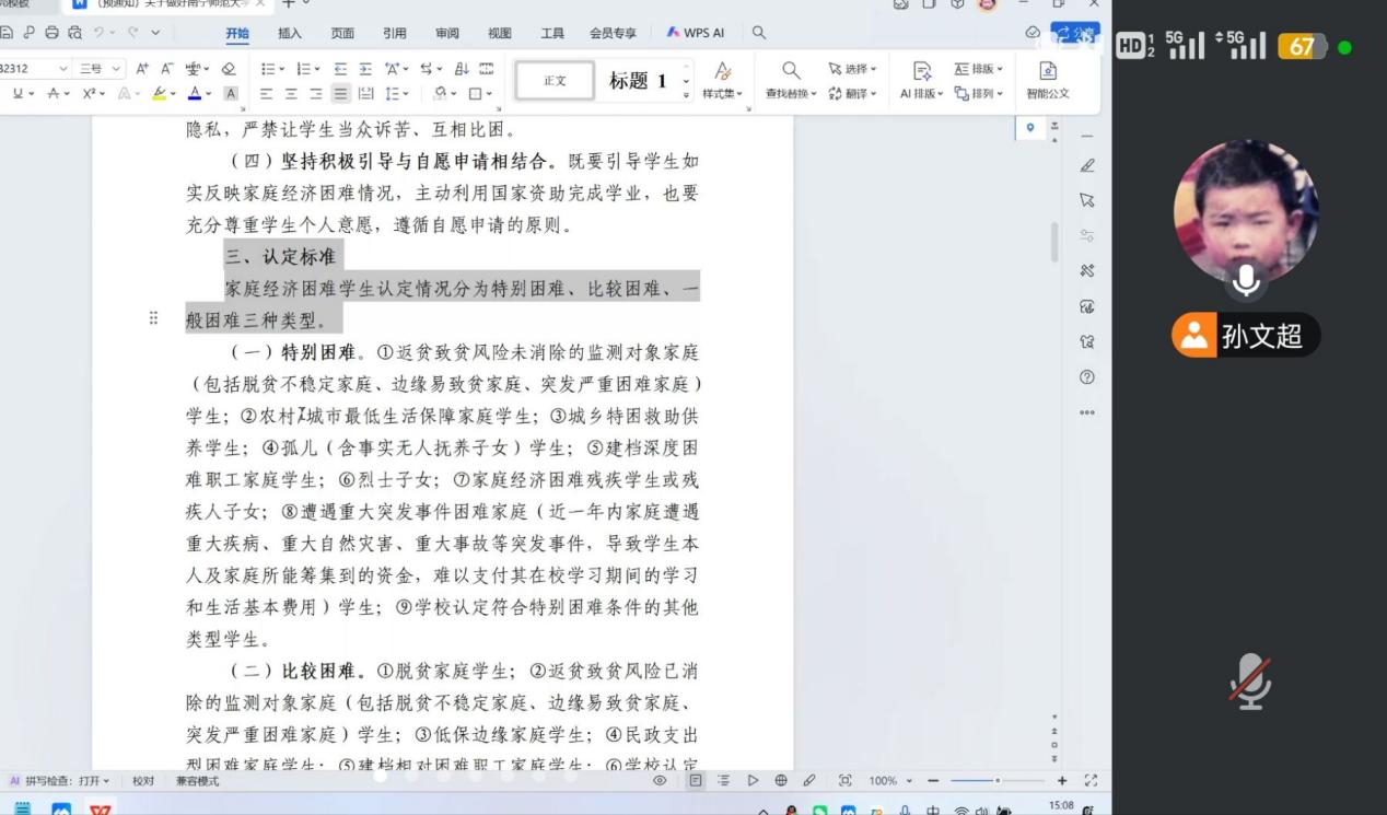 9月21日下午,一色 勤工部顺利召开家庭经济困难学生认定培训工作线上会议。本次会议由孙文超老师主持,学院盛凯副书记出席并提出工作要求,勤工部学生负责人及22-25年级各班级资助委员共同参会,为后续认定工作规范、有序推进夯实基础。