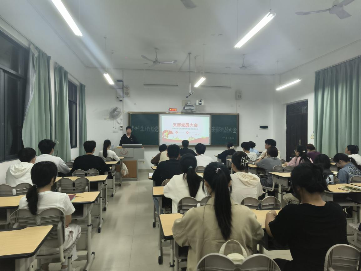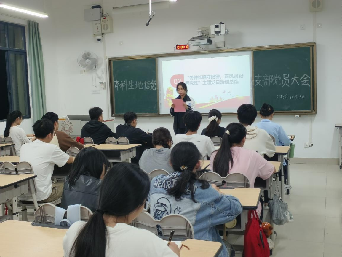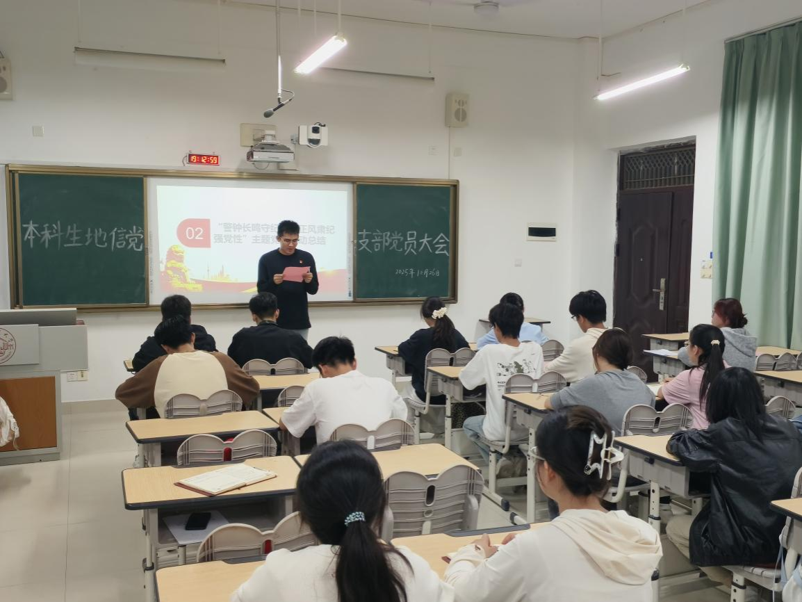 10月26日,一色 本科生地信党支部于武鸣校区1号教学楼302教室召开支部党员大会。会议由党支部书记于志强同志主持,全体党员参会。