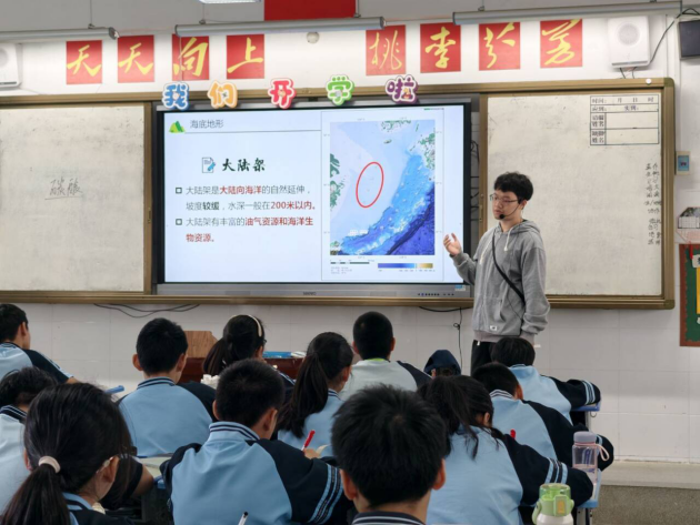 10月23日,一色 2022级地理科学专业教育实习工作进入中期阶段。为全面了解实习教师的教学进展与实际表现,确保教育实习工作扎实有效推进,学院开展了实习中期检查活动。此次检查在南宁市天桃实验学校(翠竹校区)举行,实习教师罗芯曼、韦涵升分别进行了题为《学看地形图》和《世界的地形第一课时》的课堂教学展示。学院指导教师张九菊及全体实习小组成员共同参与了听课与评课环节。