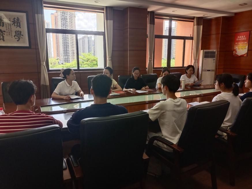 9月1日上午,地理学院2022级地理科学本科生实习见面会在天桃中学(翠竹校区)的三楼会议室召开。地理学院张九菊老师、白琨琳老师同南宁天桃中学陈媛媛副校长、地理教研组高级教师付茂芳及政教处老师郭润世,以及全体实习教师一同参与了此次见面会。