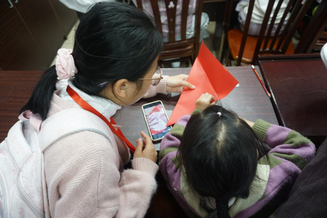 (志愿者协助小朋友制作手工作品)