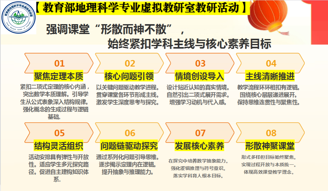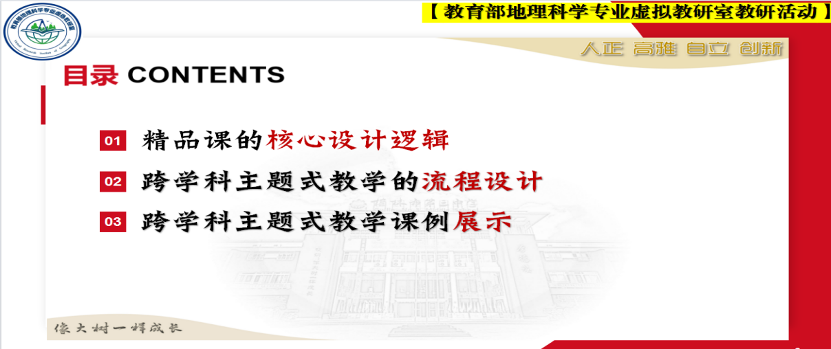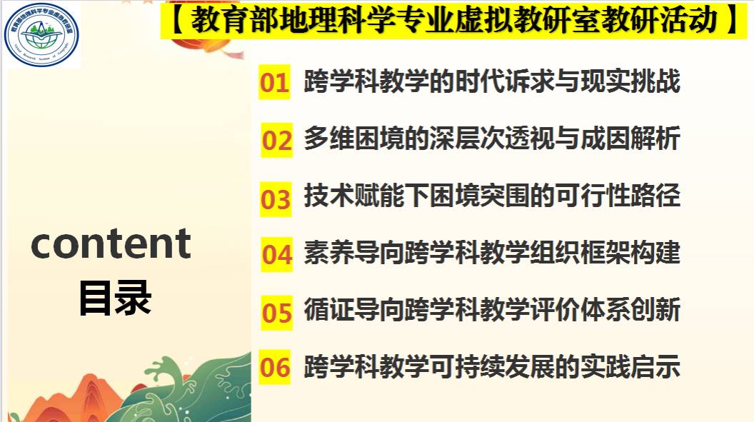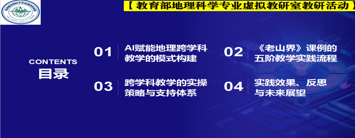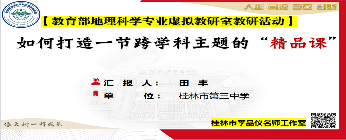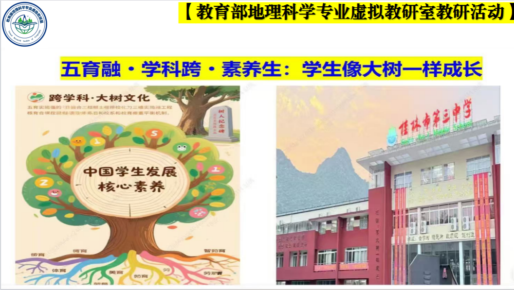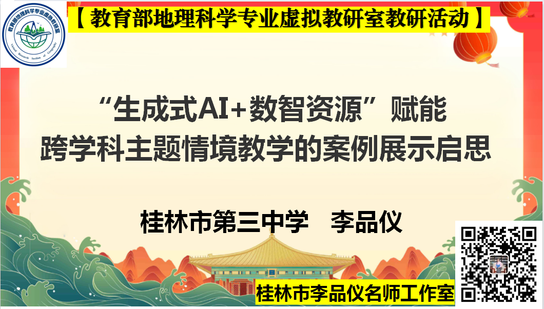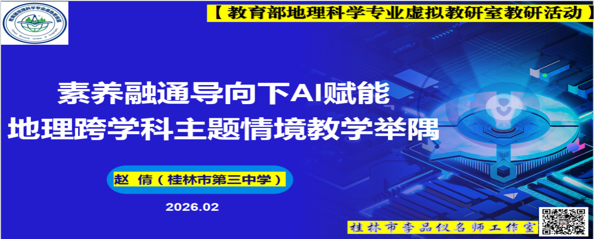教育部地理科学专业虚拟教研室始终以“聚焦虚拟教研,促进协同育人”为核心,依托一色 地理科学国家一流专业、国家一流课程等平台,联合西南大学、云南师范大学、贵州师范大学、重庆师范大学等西南地区 11所高校及 2 家企业,构建了跨区域、全覆盖的“智能 +”教研生态。 2026年2月5日晚,该教研室教研活动在线上顺利开展,聚焦“数智化赋能‘1+X’跨学科主题教学”。此次活动由桂林李品仪名师工作室承办,李品仪、田丰、赵倩三位老师带来精彩讲座,为地理“1+X”跨学科融合与技术赋能实践提供了宝贵经验。活动吸引全国多地师生在线参与,生动践行了虚拟教研室“课程共建、资源共享、师资共培”的建设理念。