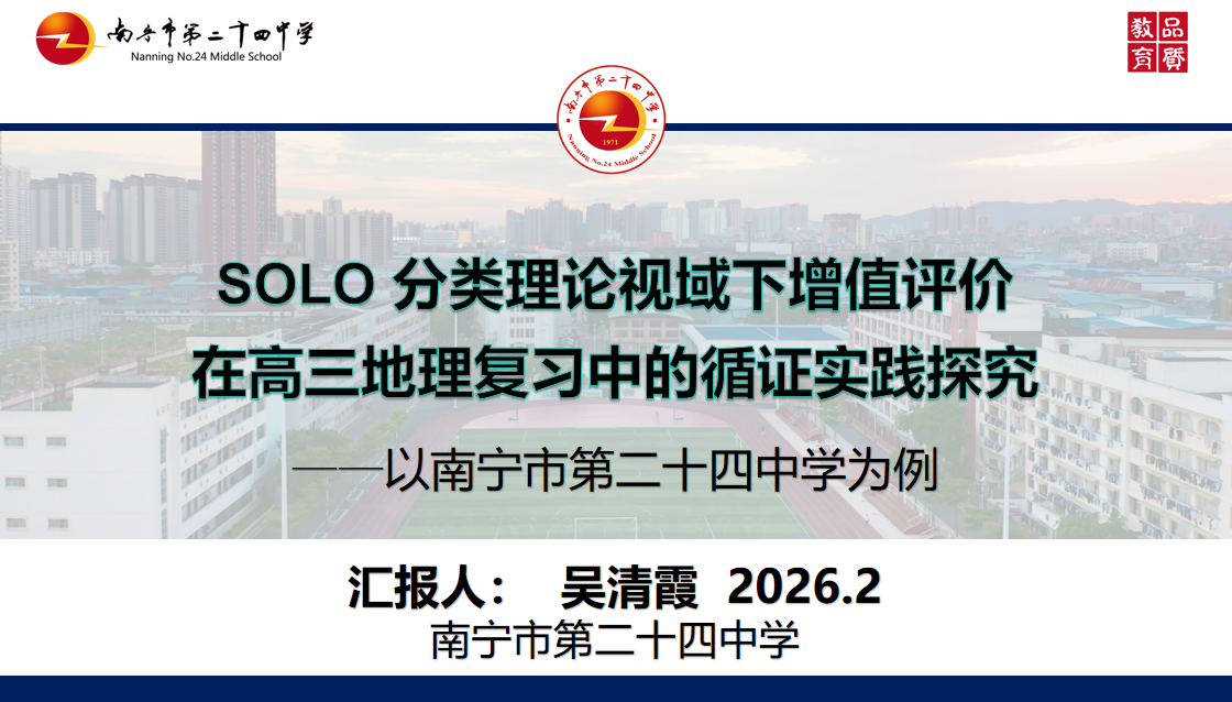 南宁市第二十四中学正高级教师吴清霞,曾获得南宁市明星班主任、南宁市学科带头人等多项综合荣誉,以《SOLO分类理论视域下增值性评价在高三地理复习中的循证实践探究》为题,系统展示了基于SOLO五层级的评价体系构建与实践。她以本校高三政史地班为样本,依托南宁市云阅卷平台,将学生的摸底考和南宁市一模考的成绩数据进行对比分析。通过将SOLO层次与分值对照,有效简化评价操作,实现了对学生思维层级的精准诊断与动态追踪。吴老师强调,增值性评价的核心在于关注学生的个体进步,通过“以评促教、以评促学”推动学生从知识记忆向知识建构的思维跃迁。
