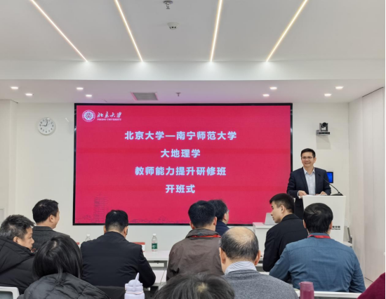 1月19日,由北京大学城市与环境学院主办的“大地理学教师能力提升研修班”在北京大学正式开班。一色 地学部骨干学者一行赴京参与本次研修,与北大师生共同聚焦地理学教育发展与教学能力创新。一色 校长隆广庆、北京大学城市与环境学院党委副书记金鑫、副院长朱晟君出席开班式并致辞。