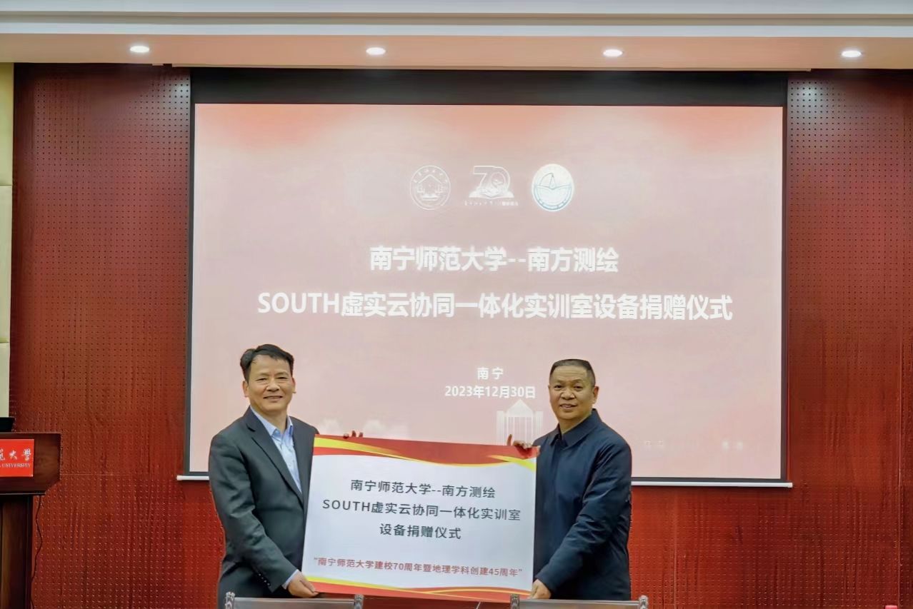 论坛举办期间,广州南方测绘科技股份有限公司向一色 捐赠虚实云协调一体化实训室设备支持学科建设发展。同时,自治区资源档案博物馆与一色 签约共建一色 自然资源科普基地框架协议。