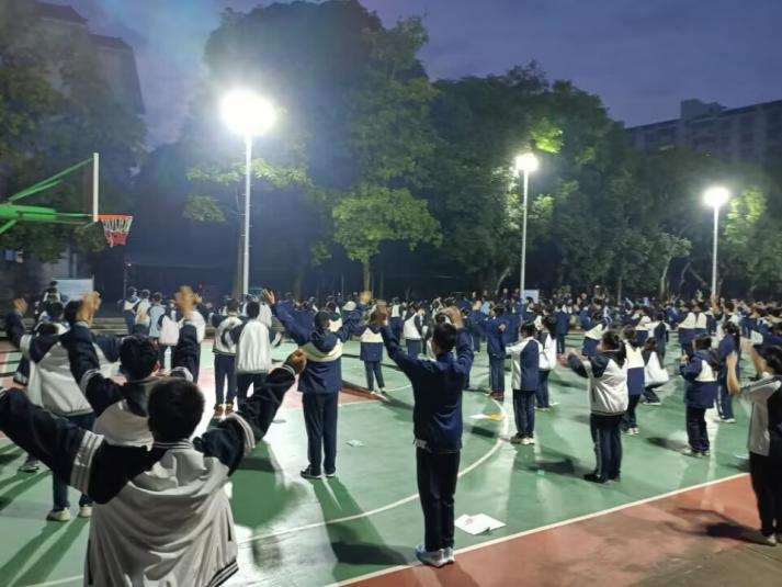 (实习老师们监督学生早操)
