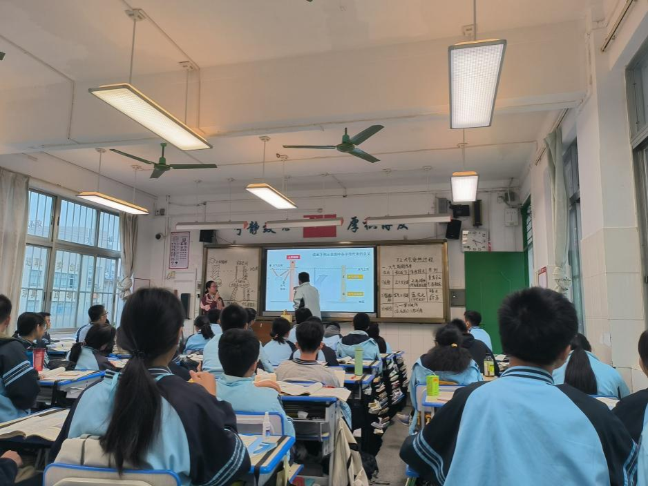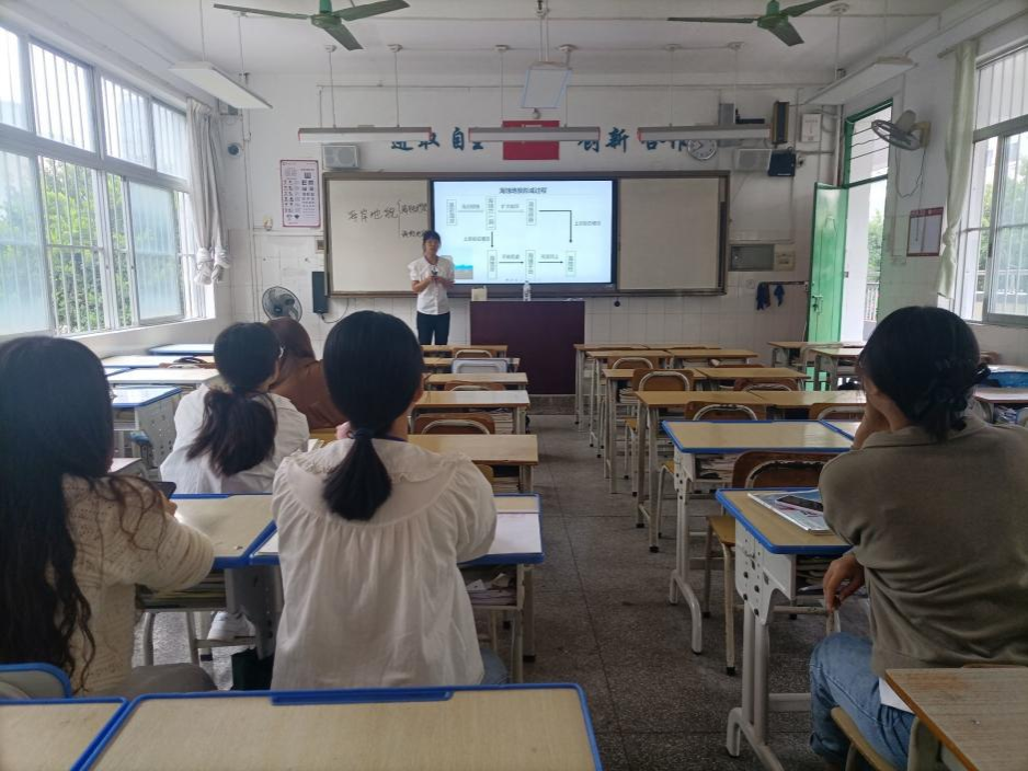 2023年11月28日,2020级地理科学专业南宁市第二十八中学地理实习组的两位实习老师向大家作公开课汇报,展示在实习期间提高的教学技能。一色 地理科学系李忠标老师及南宁市第二十八中学高一地理组和高二地理组的老师到场指导。实习教师马艳凤授课的内容是湘教版高中地理必修一《水循环》,实习教师代美玲授课的内容是湘教版高中地理选择性必修一《洋流》。两位实习老师都展示了比较成熟的授课技巧,仪态端庄,重难点突出,上课节奏把握得非常合适,课堂氛围活跃,充分调动了学生的学习积极性。实习教师马艳凤以“农夫山泉”作为导入,以问题引领课题,以生为本,充分发挥了学生的主体地位,点燃了学生的思维之花。实习教师代美玲以“小黄鸭漂流记”进行导入,让学生跟随“鸭子舰队”的航线路径,一起探索全球洋流模式图,呈现出一场精彩纷呈的教学活动。这两位老师都充分锻炼了学生的地理实践力,让学生体验到了不一样的地理课堂,大大提升了学生学习地理的兴趣。