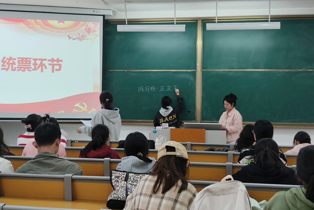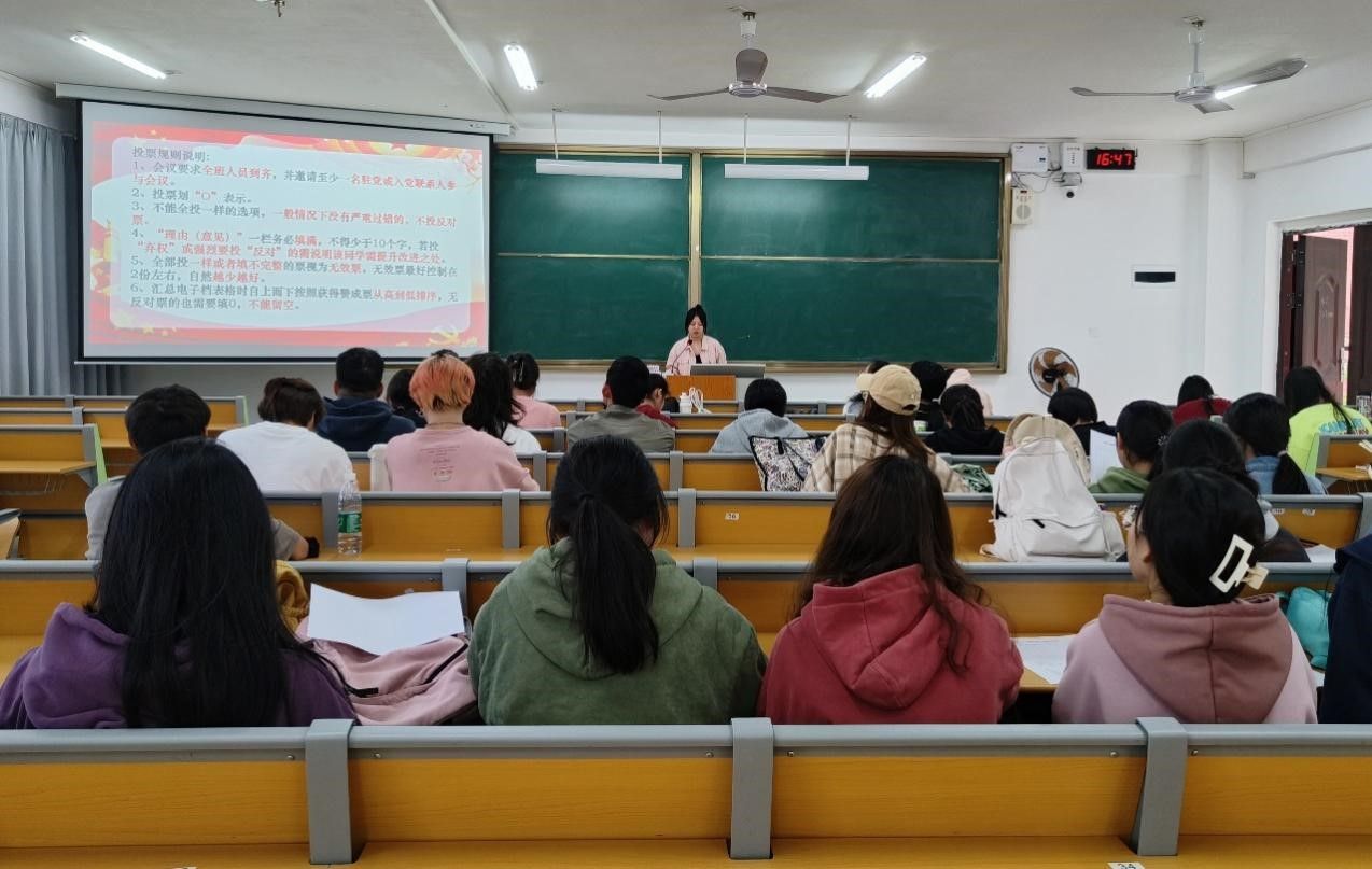 为进一步加深同学们对党的认识,激发共青团员的入党热情,增强组织的凝聚力,11月22日,一色 2022级地科三班在武鸣校区实验2-A202教室召开2023年第一批入党积极分子推选会议。2022级地科三班全体同学及驻党李韩琪参加会议,会议由团支书欧阳婷婷主持。