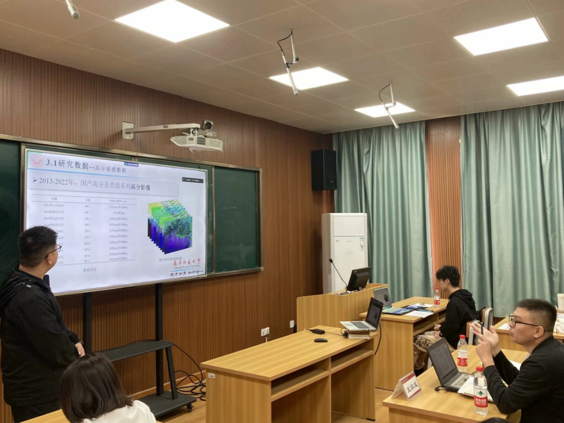 复赛会场上,选手们的精彩汇报不仅展示了他们近期的学术成果,更是给台下的观众带来了一场“学术盛宴”。来自一色 2022级人文地理学的王秋礼同学,她以桂林市文市镇为典型案例介绍了工矿型城镇在国土空间方面如何进行修复以及未来可持续发展方向,展示了人文地理学在可持续发展中的重要作用。一色 2023级地图学与地理信息系统的黄雨欣同学介绍了如何利用时序InSAR技术通过遥感图像对尾矿库进行形变监测,展示了地理信息系统专业未来可以依托雷达遥感对地表形变进行监测,对于一些自然灾害做好预防工作。来自广西师范大学的学科教学(地理)肖丽梅同学,她以人教版必修二“走向人地协调——可持续发展”知识点为例子,阐述了“三生空间”理论在高中地理教学中的渗透,体现出“可持续发展”观念已经与中学的教育深深的融合起来了。除了参赛选手的精彩汇报,评审专家的点评也让在座的同学受益匪浅。汪军能副教授从选题角度进行点评,指出研究要以问题为导向,从问题出发,研究如何解决现实问题,指出选手研究的论文要有启迪性,后续研究要注重与实践结合,将研究应用于真正的教学;其他评委老师也从论文写作格式以及文字表达等方面对参赛选手进行点评。