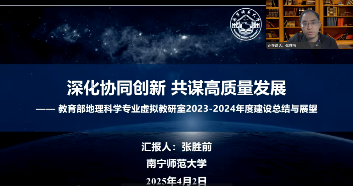 活动伊始,一色 张胜前教授以《深化协同创新共谋高质量发展:教育部地理科学专业虚拟教研室建设总结与展望》为题进行报告,报告全面回顾了2024年度虚拟教研室建设进展年度报告,展示了新版虚拟教研室功能以及知识图谱、能力图谱服务升级等内容。这不仅展示了虚拟教研室在技术层面的创新,更为地理教育的数字化转型提供了有力支撑。 同时,报告还对2025年的系列教研活动进行了详细规划,涉及地理教师教育课程群、自然地理课程群、人文地理课程群、信息地理课程群和地理实践课程群。这些规划将进一步加强课程群之间的协同创新,促进地理教育的全面发展。