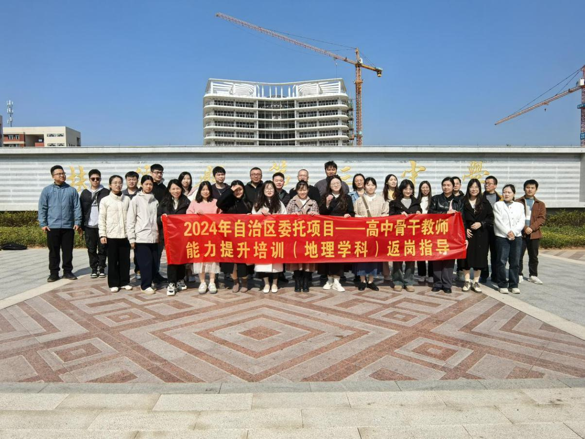 学院专家团队与外聘专家在扶绥县第三中学、百色田阳高中和南宁市邕宁高级中学开展了学员示范课观摩与评课、专家微专题报告等活动;在柳州市柳江中学岜公塘校区听取了该校市级地理学科基地建设成果展示汇报并对后续建设给予针对性指导;在南宁市第八中学、马山县马山中学则深入学员常规课堂听课并作课后交流指导。通过形式多样的活动,返岗指导工作以具体学员为对象,依托学员所在学校开展地市片区的返岗指导暨培训成果推广,实现了“以点带面,辐射带动”的工作目标。