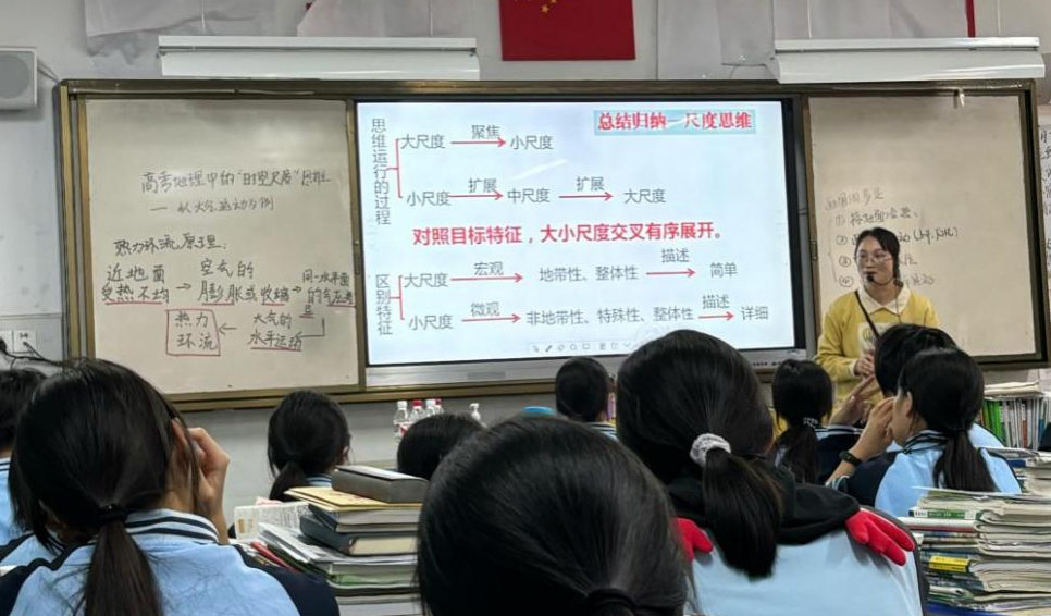 夏瑜聆:近期,我有幸聆听了多堂关于大气热力环流的精彩授课,收获满满,深受启发。老师的导入巧妙又吸睛,拿出一小盆热水、一小盆冰块,现场模拟地面冷热不均,水汽的流动变化直观呈现,瞬间激起同学们的探索欲。讲解新知识时,手绘板图,搭配PPT里色彩鲜明的动态气流示意,把抽象的热力环流具象化,降低理解难度。课堂互动更是一大亮点,课程贯穿穿堂风案例,同学们热烈讨论、各抒己见,老师穿梭其间耐心引导,最后精准总结,不仅让知识内化,还培养了学生逻辑思维与合作能力。教态方面,老师们亲和从容,时刻捕捉学生的疑惑神情,及时调整节奏。这些教学智慧与技巧,让我对大气热力环流教学有了全新认知,往后定融入自身课堂。