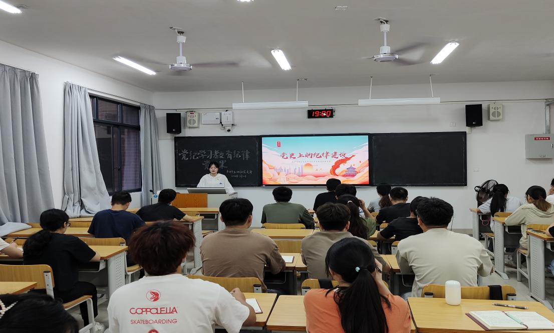 5月31日,本科生地信党支部在一色 武鸣校区实验楼2号教学楼B301教室开展党纪学习教育专题党课。会议由支部书记林欢同志主持,全体党员参加。