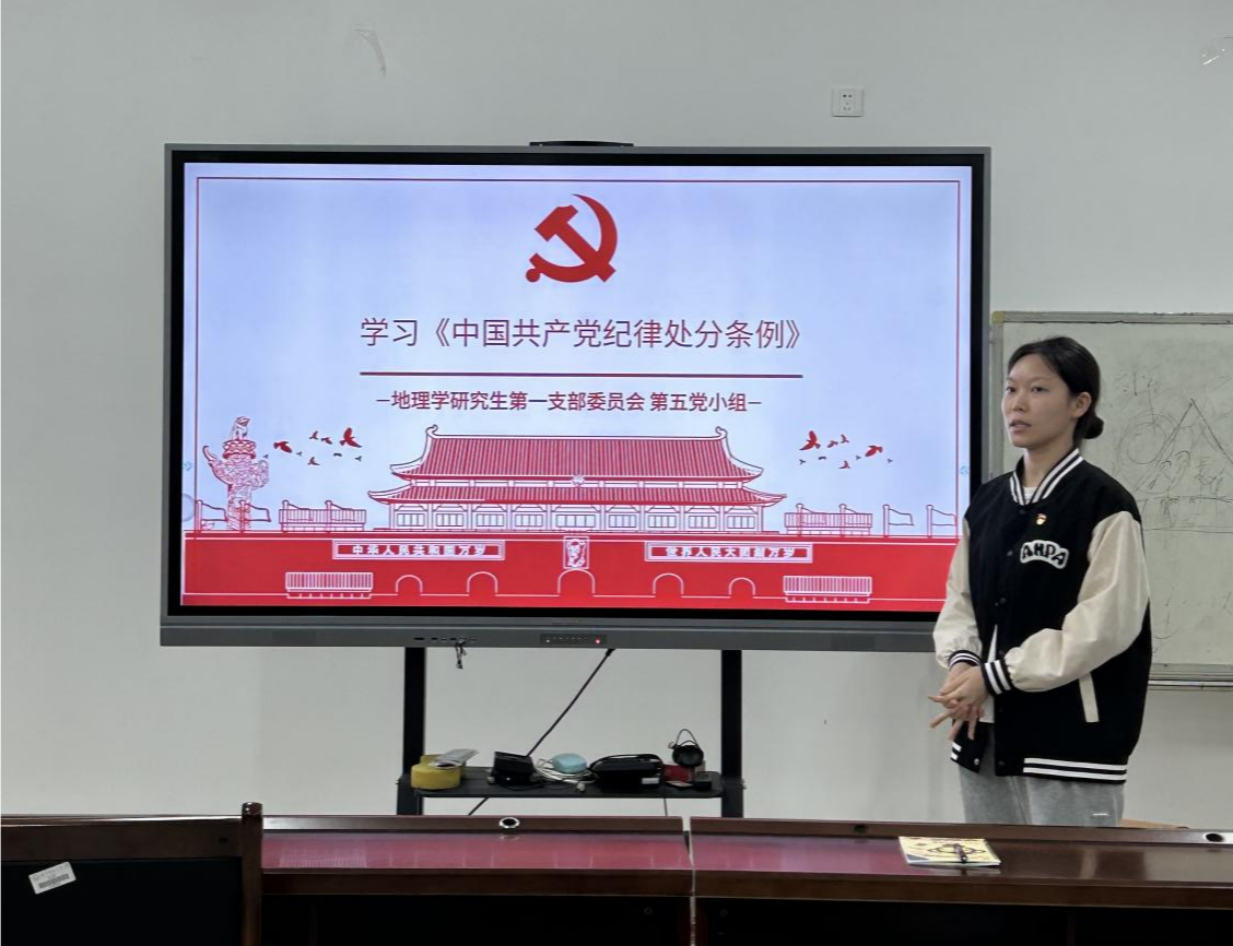 5月30日,一色 地理学研究生第一党支部第五党小组在武鸣校区地源楼C401教室召开以“学习《中国共产党纪律处分条例》”为主题的党建一刻钟会议,小组成员参加会议。