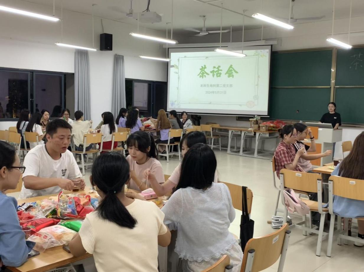 5月31日,一色 本科生地科第二党支部在武鸣校区实验2号楼C104教室召开茶话会。茶话会由黄小同志主持,支部全体成员参会。