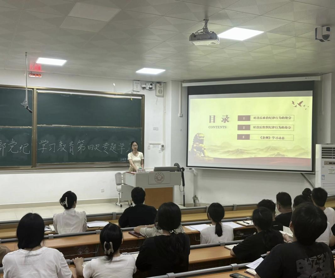6月16日,本科生地信党支部在一色 武鸣校区二号教学楼109教室举行党纪学习教育第四次集中学习,全体党员参会。