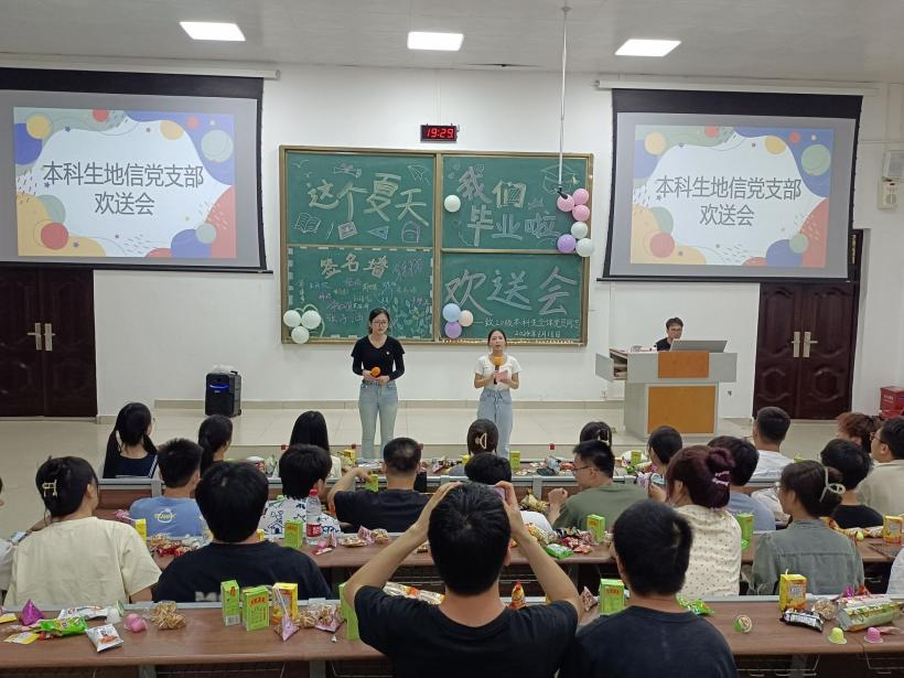 6月16日,本科生地信党支部在一色 武鸣校区地源楼B107教室召开本科生地信党支部2024届毕业生党员欢送会。活动由綦文嘉和韦妙茵同志主持,全体党员参会。