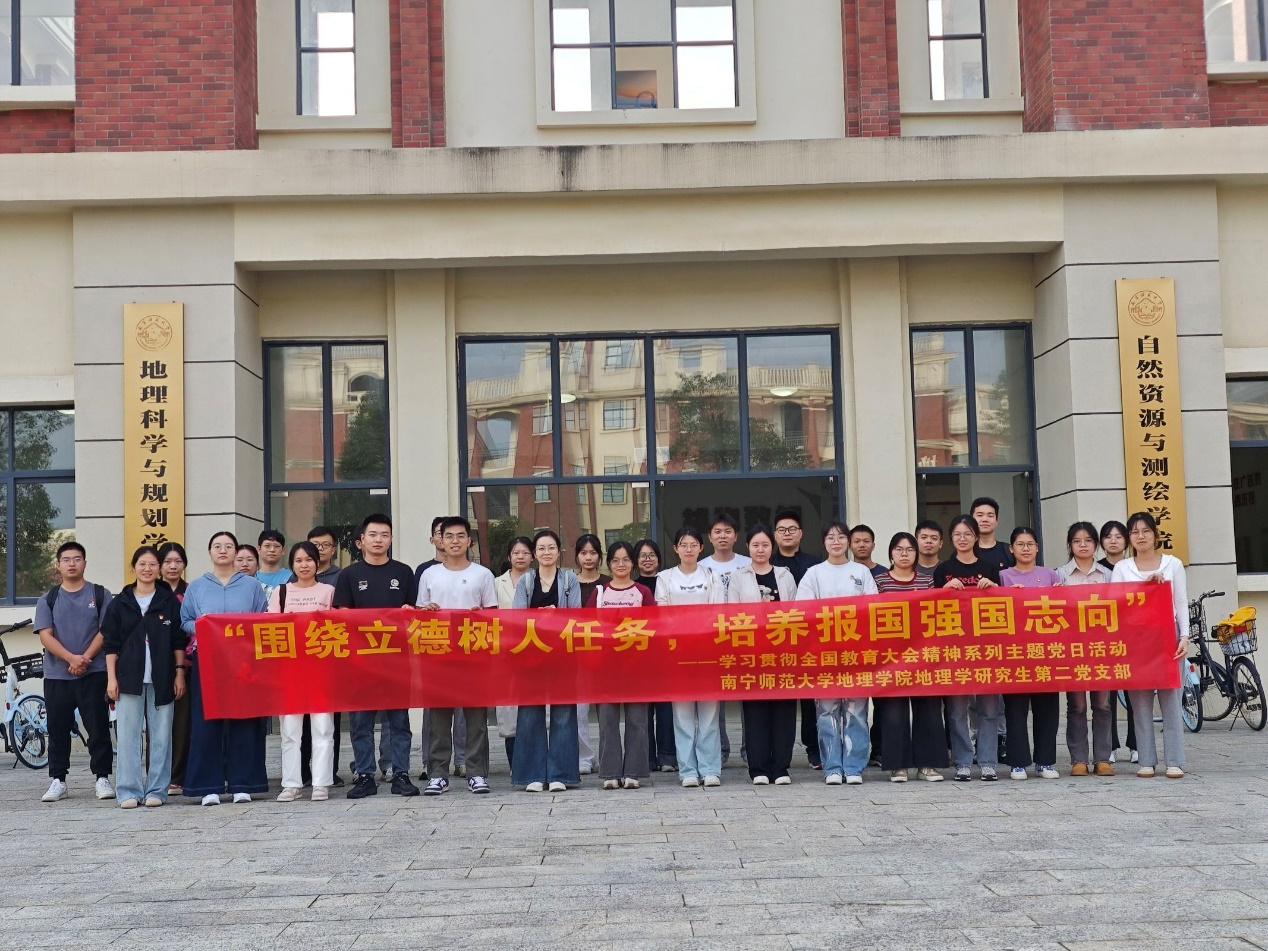为进一步引导支部党员深入理解立德树人的内涵和要求,明确党员的责任和使命,学院地理学研究生第二党支部于2024年11月3日在武鸣校区二号教学楼开展“紧紧围绕立德树人根本任务,培养报国强国志向——学习贯彻全国教育大会精神”主题党日活动。此次活动由余潇同志主持,党支部全体成员积极参加。