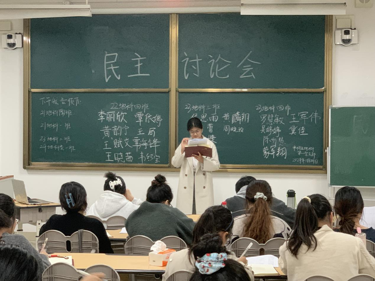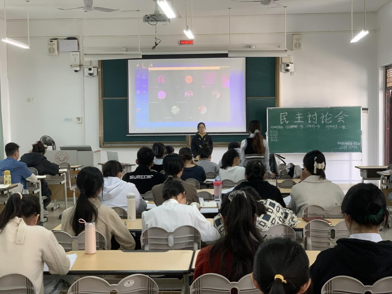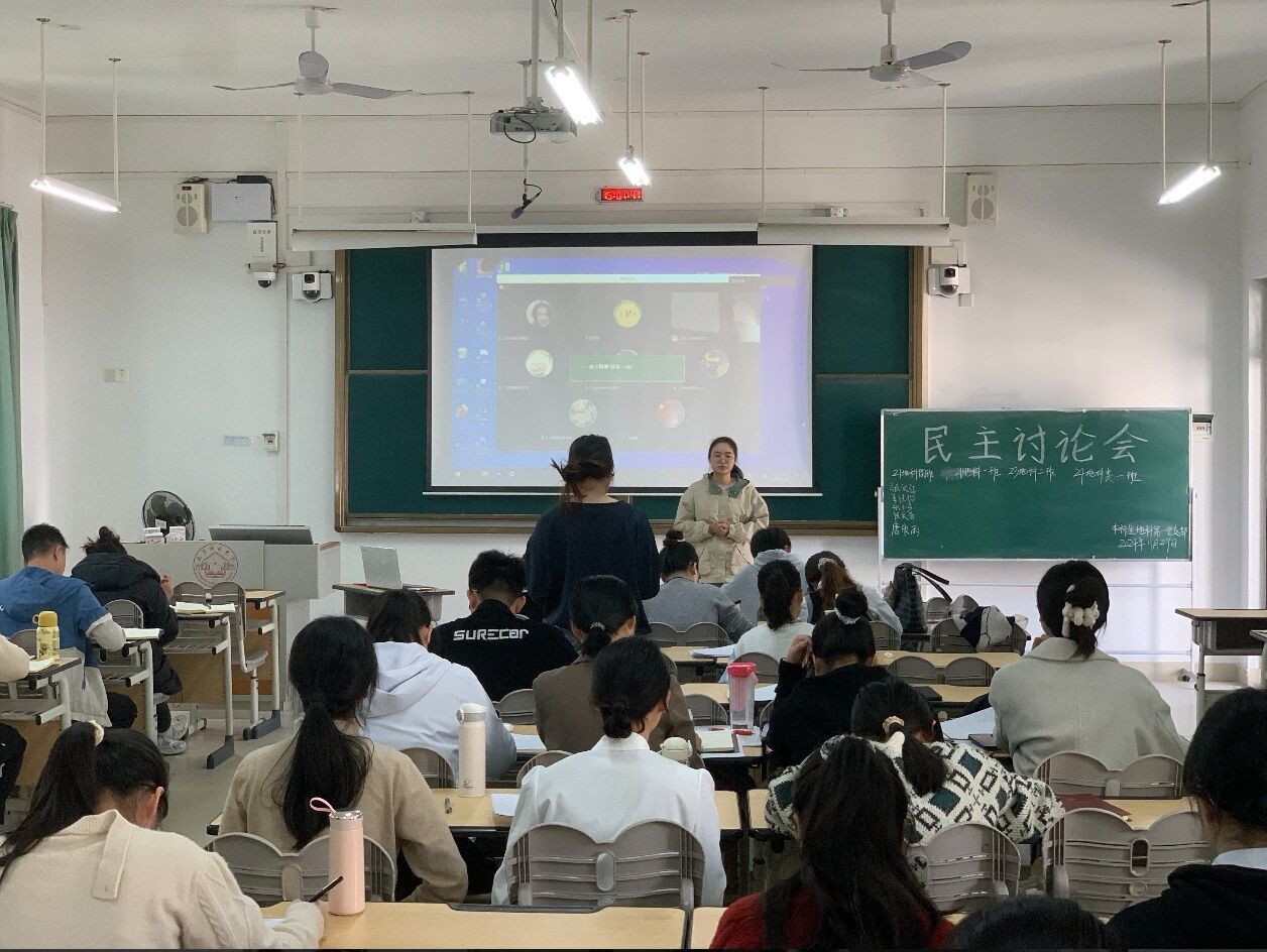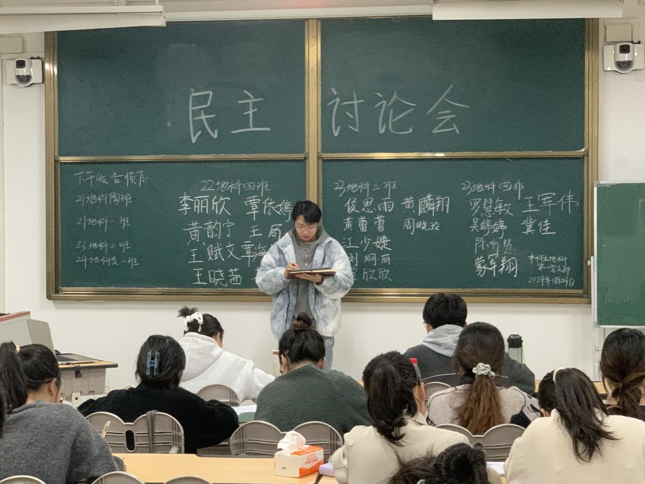 2024年11月29日,一色 本科生地科第一党支部在武鸣校区2号教学楼317教室召开了民主讨论会。会议由支部组织委员邓灿同志主持,全体党员共同参与。