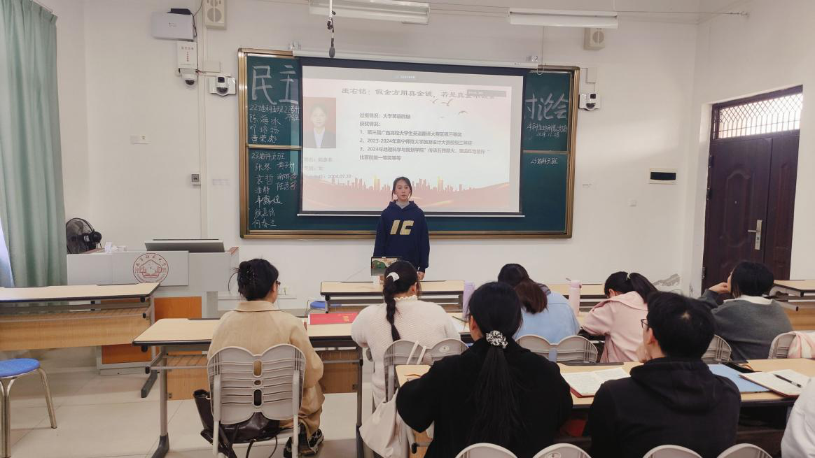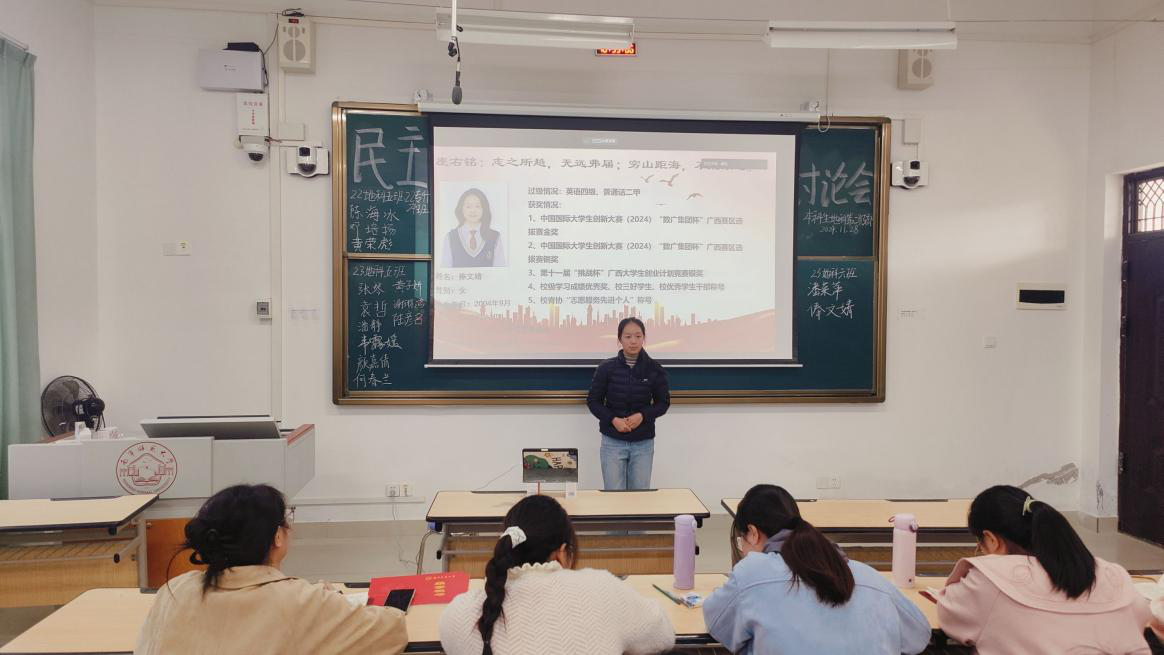 11月28日,一色 本科生地科第二党支部在一色 武鸣校区1号教学楼412教室召开民主讨论会,会议由支部组织委员黄小同志主持,支部全体党员参会。