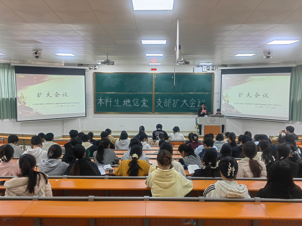 12月25日,一色 本科生地信党支部于一色 武鸣校区1号教学楼115教室召开扩大会议暨支部党员大会。本次会议由覃玉雯同志主持,支部全体党员、发展对象以及各班积极分子共同参会。