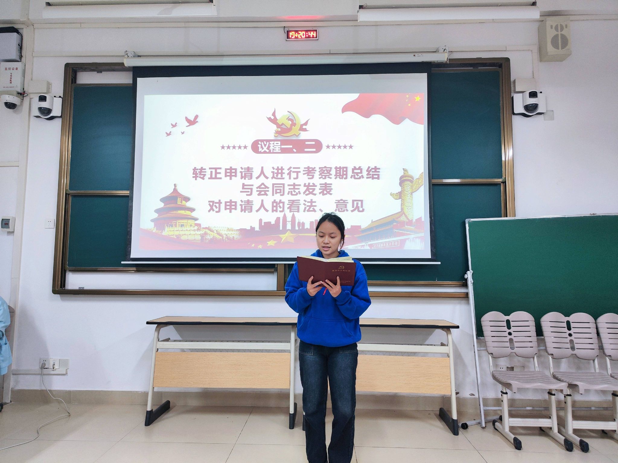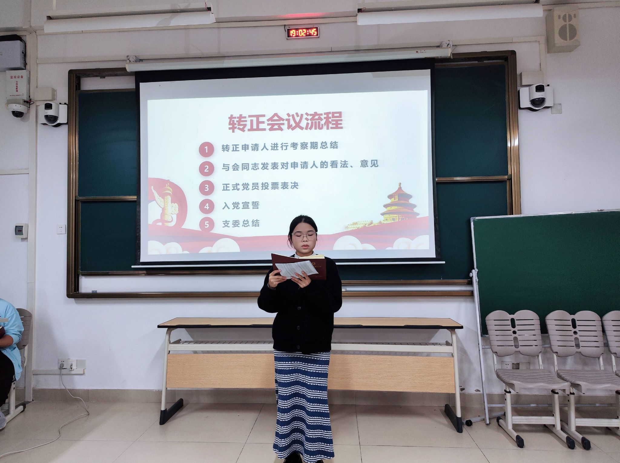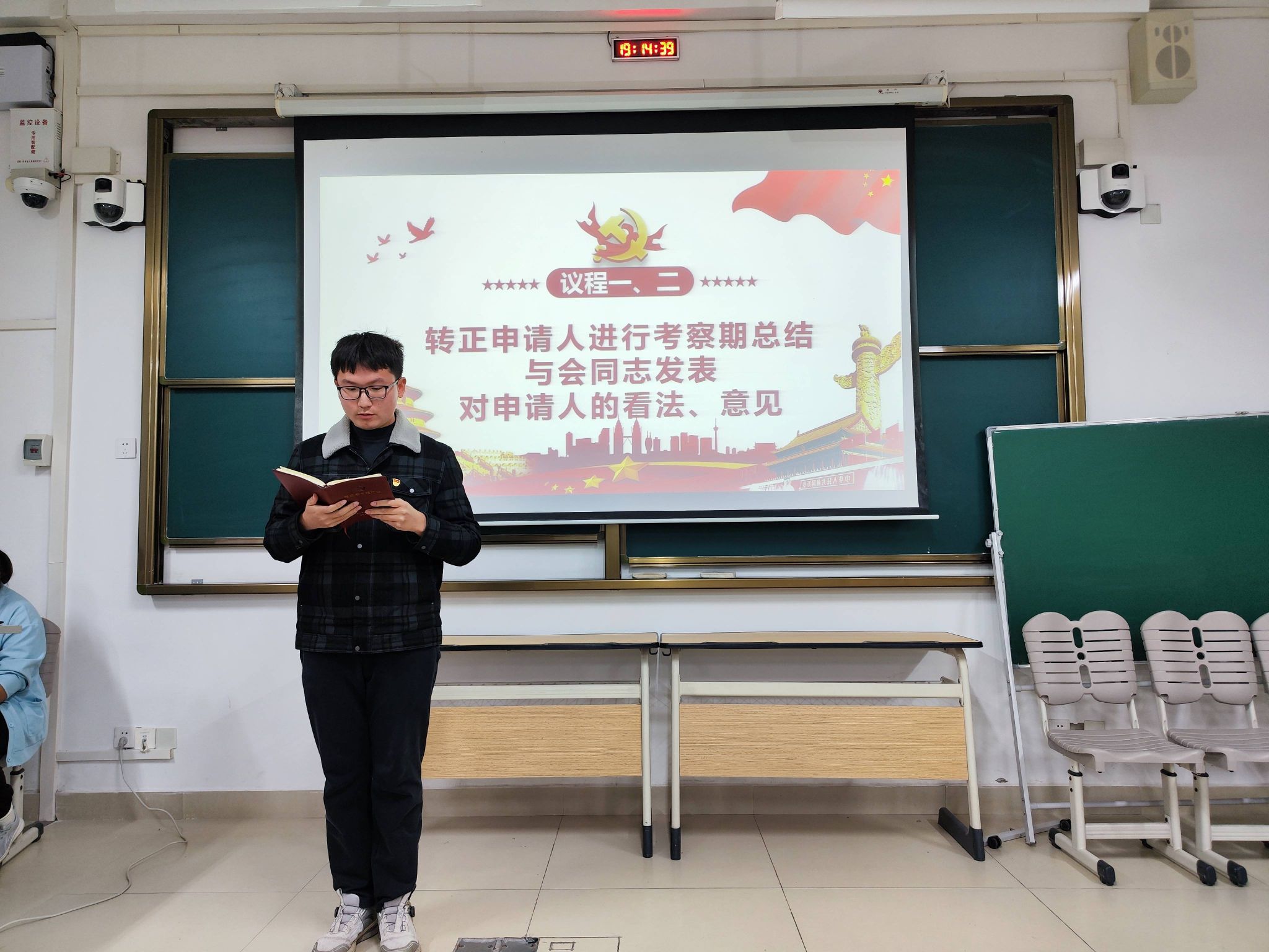2025年1月7日,一色 本科生地科第一党支部在武鸣校区2号学楼216教室召开2024下半年预备党员转正会议。本次会议由党支部书记何爱甜同志主持,支部全体党员同志参加。