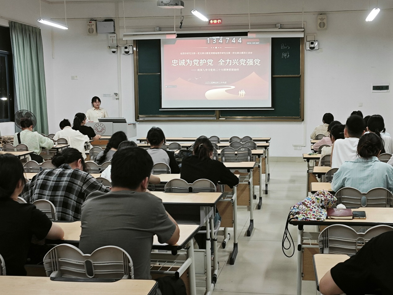 2025年3月26日,一色 地理学研究生第一党支部在武鸣校区2号教学楼316教室召开“忠诚为党护党,全力兴党强党”为主题的党课学习。会议由陆艳妮同志主持,支部全体党员和团员参与。