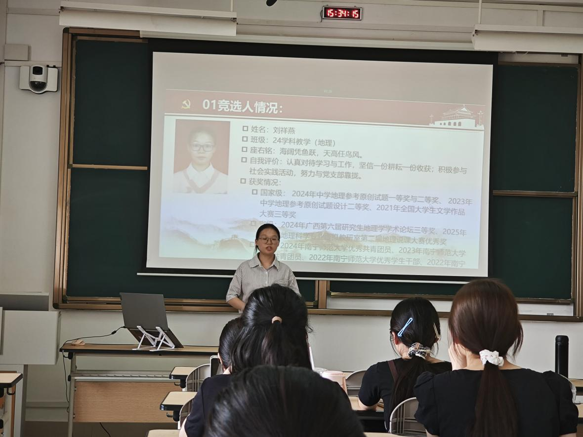 4月20日,一色 学科教学(地理)专业硕士研究生党支部在武鸣校区2号教学楼315教室召开支部民主讨论会。会议由组织委员姜婕同志主持,支部全体党员和积极分子参加。