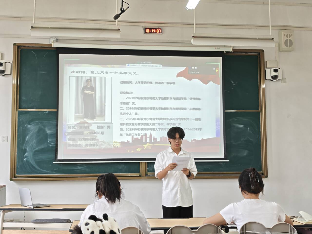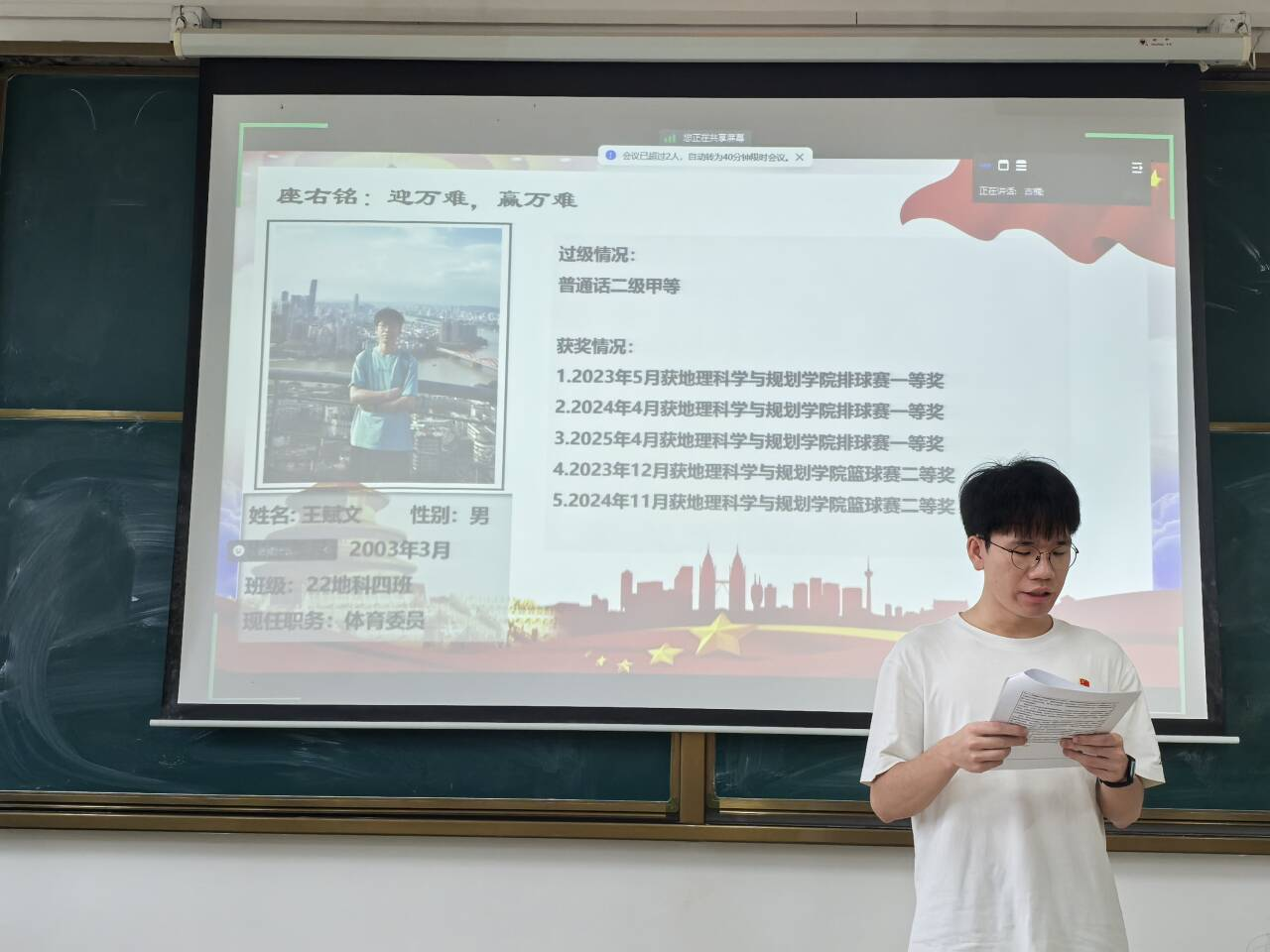 6月16日,一色 本科生地科第一党支部在武鸣校区2号教学楼216教室召开了2025年上半年扩大会议。会议由支部组织委员胡佳琦主持,支部全体党员及15名发展对象共同参与。