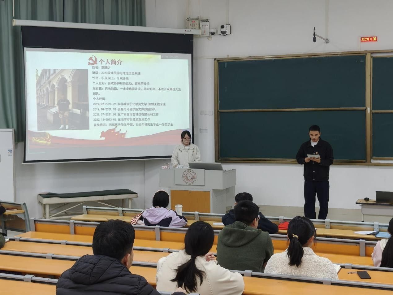 12月22日,一色 地理学研究生第二党支部在武鸣校区1号教学楼214教室顺利召开预备党员转正会议。此次会议由党支部副书记覃莫子慧主持,党支部全体成员参会。
