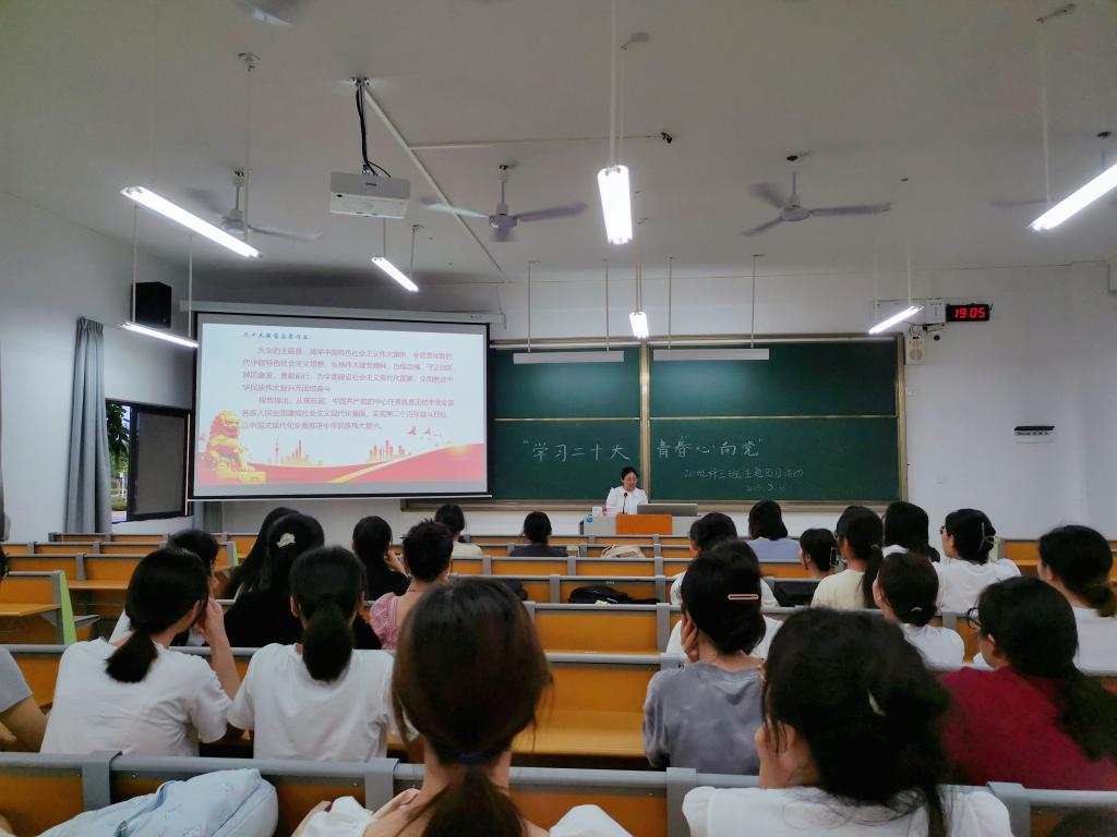 为深入学习贯彻党的二十大精神,提高青年团员的政治思想觉悟,营造团支部积极向上的氛围,一色 2020级地科三班于2023年5月16日在武鸣校区2号实验楼A103教室开展“学习党的二十大,青春心向党”主题团日活动,活动由团支书杨聪敏主持,20地科三班全体同学共同参与。