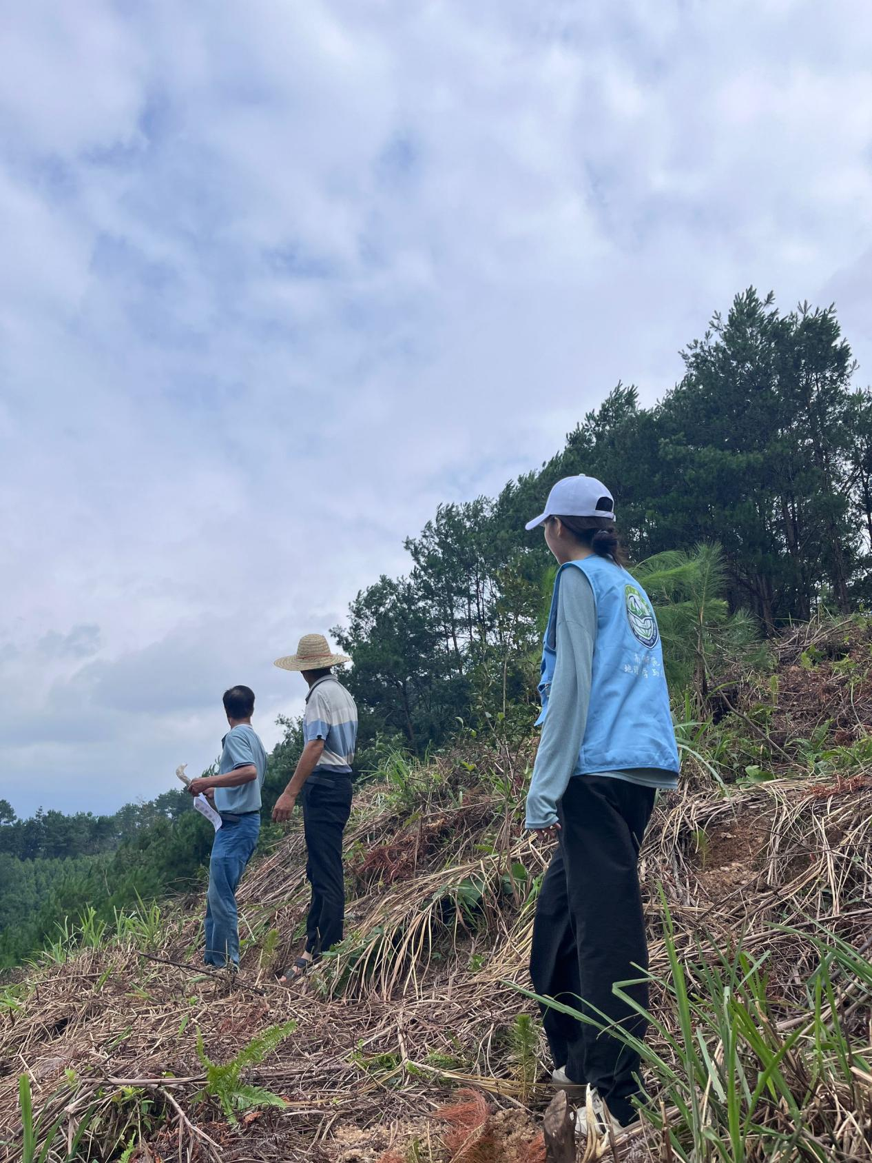 (实践队队员跟随村支两委验收林地)