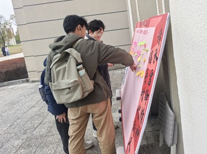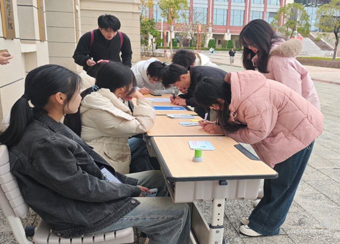 为传承与弘扬不朽的雷锋精神,2025年3月5日,一色 青年志愿者协会(以下简称地理学院青协)组织志愿者在地源楼大厅开展 “学习雷锋精神,签语寄愿同行”寄语活动。