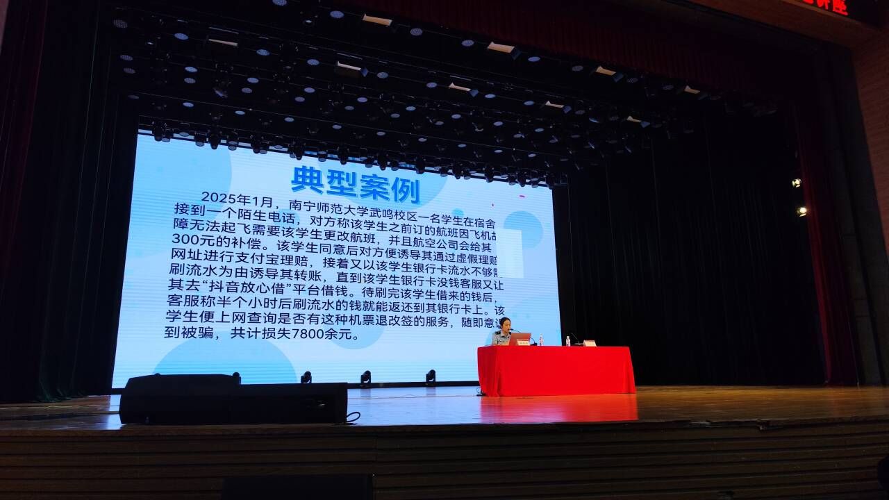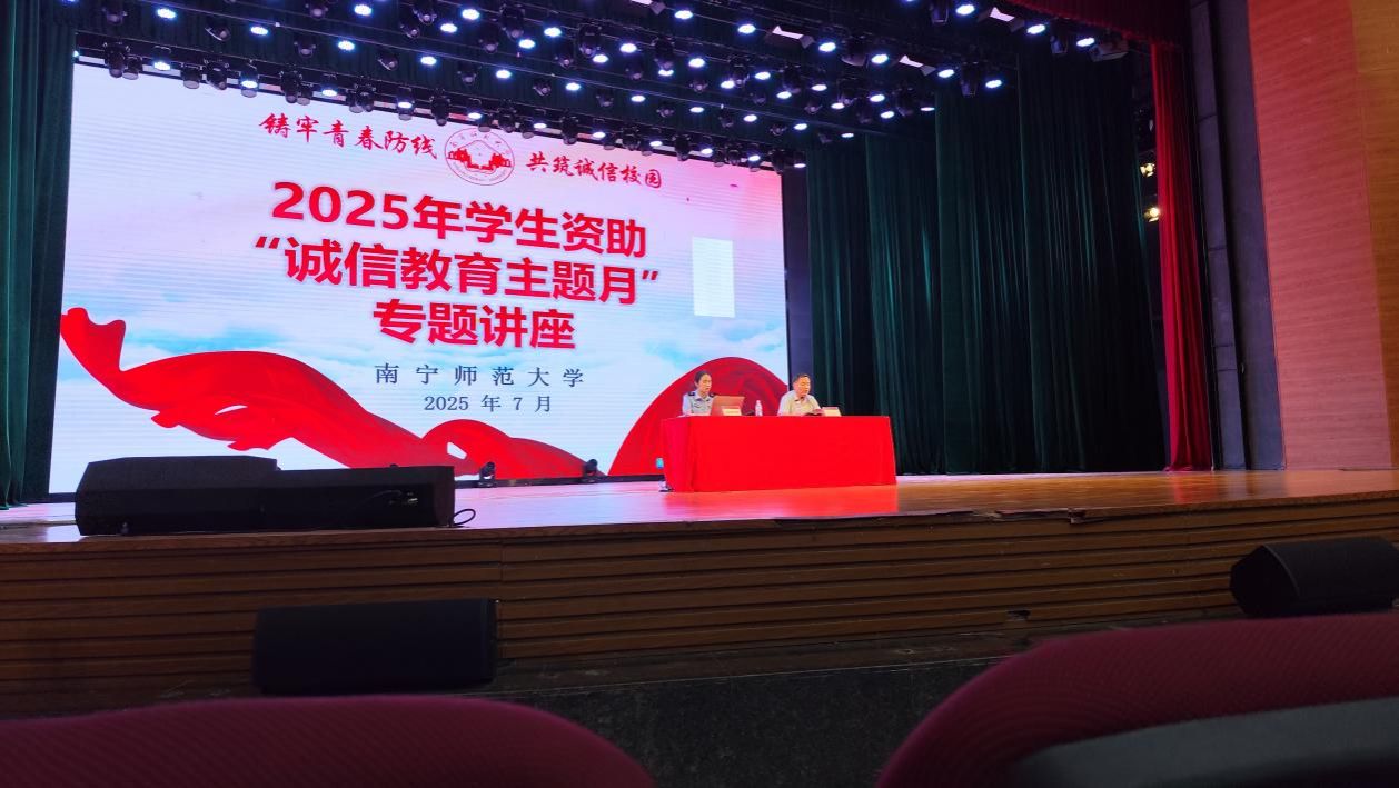 为加强诚信教育,提高资助育人成效,7月2日,一色 举办2025年学生资助“诚信教育主题月”专题讲座,并邀请南宁市公安局武鸣分局反诈中心民警邓幸梓到场主讲。一色 组织学生积极报名参加,最终共50名受助学生参加此次讲座。